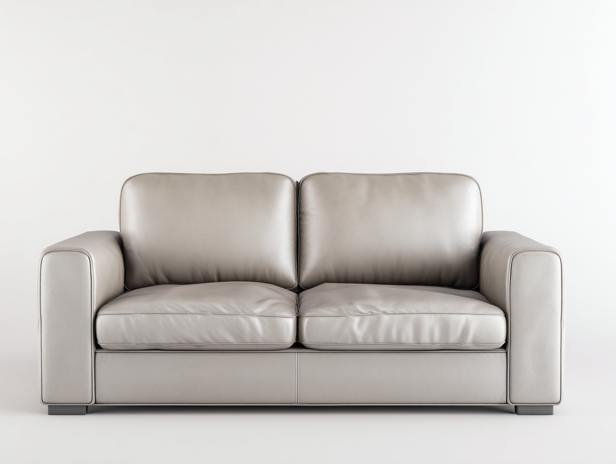 La estructura interna está fabricada con madera resistente que proporciona estabilidad durante el uso cotidiano. El exterior está recubierto con cuero sintético en color gris que ofrece una superficie suave y fácil de limpiar. Los cojines del asiento y del respaldo incorporan relleno de espuma que proporciona soporte cómodo y uniforme.