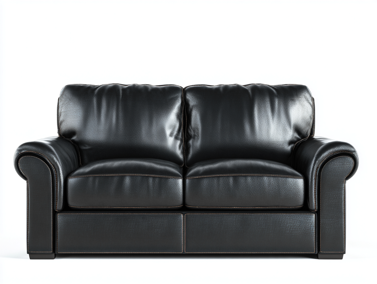 La estructura interna está fabricada con madera resistente que proporciona estabilidad durante el uso diario. El exterior está recubierto con cuero sintético en color negro que ofrece una superficie suave y fácil de limpiar. Los cojines de asiento y respaldo incorporan relleno de espuma que proporciona soporte uniforme y comodidad durante el descanso.